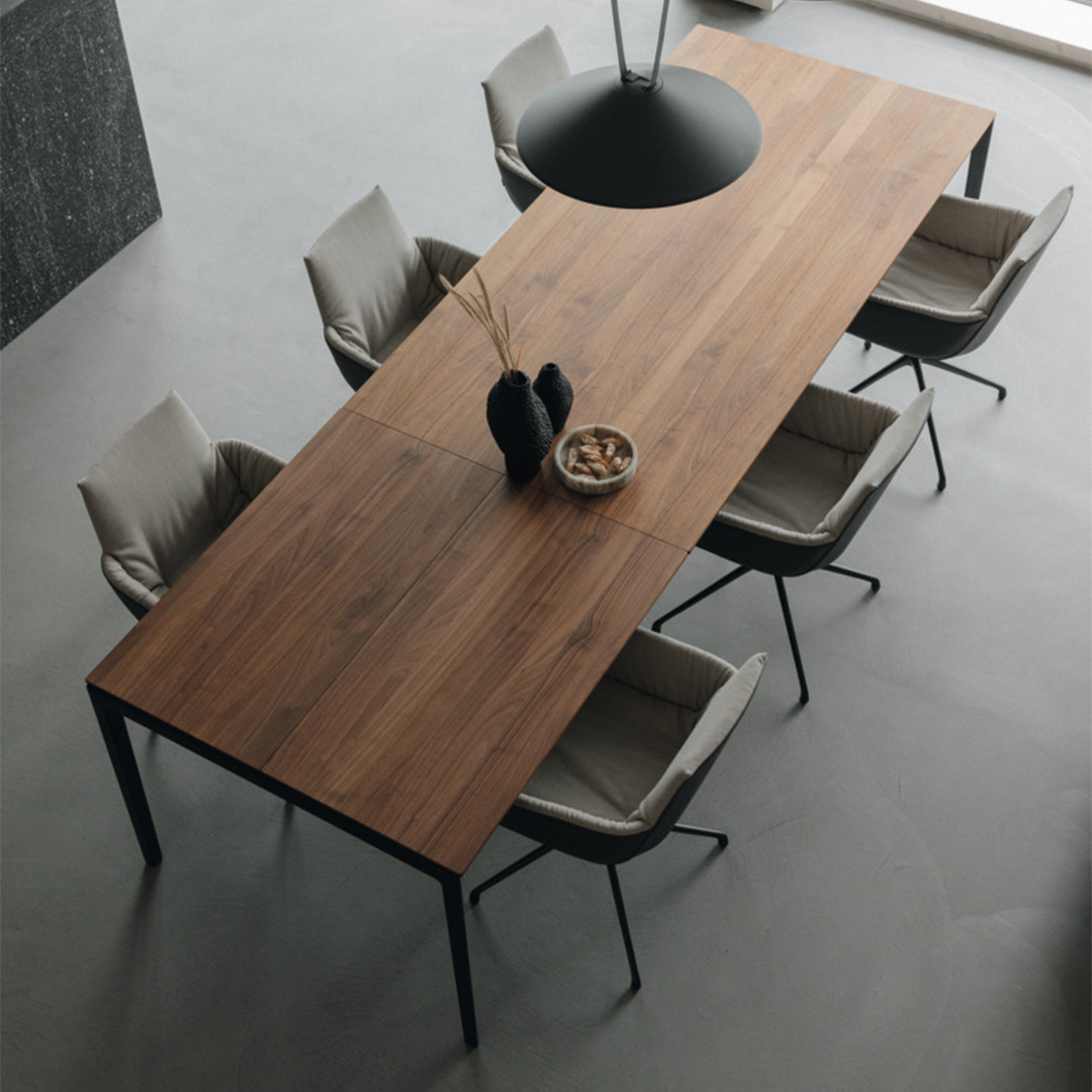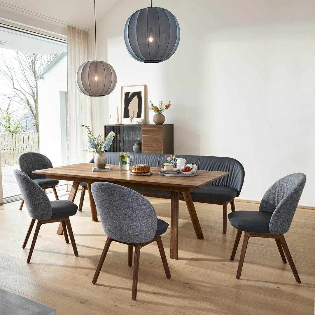 Canapé Iago de Natuzzi | Table Tak en noyer et chaises Lui de Team 7 |