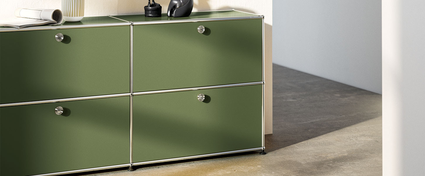 L'intemporalité et la polyvalence du design des meubles USM sont sublimées par la couleur vert olive. Le juste équilibre de cette tonalité permet à ce vert naturel de s'harmoniser dans tous les intérieurs. Originale, vivante, subtile et fraîche, cette teinte intemporelle possède des caractéristiques rassurantes et adoucissantes.