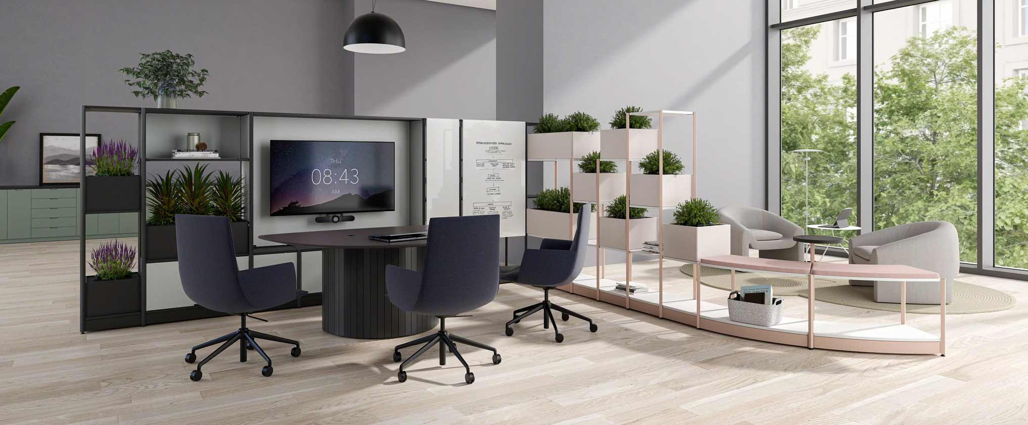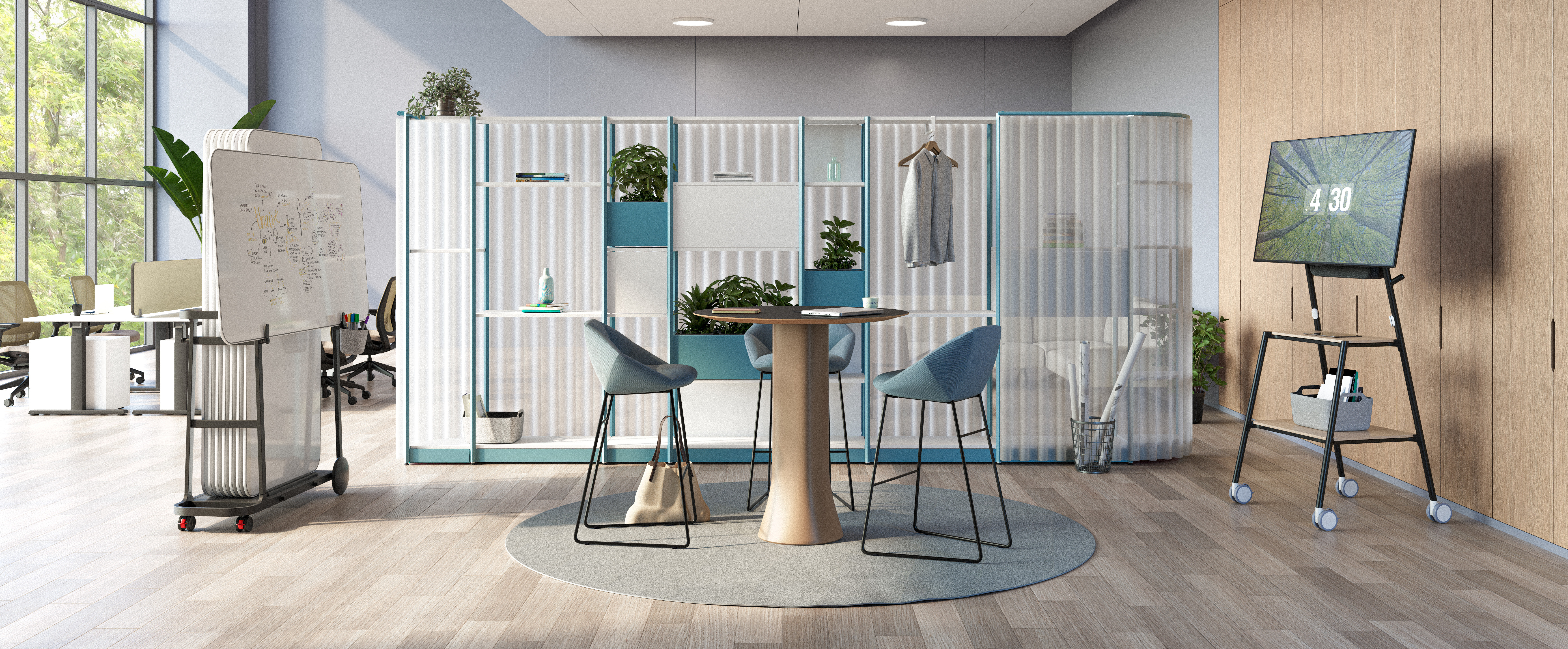 Ces modules sont des séparateurs ultra flexibles qui permettent de structurer un espace selon les besoins en créant des zones de travail pour collaborer ou se concentrer.