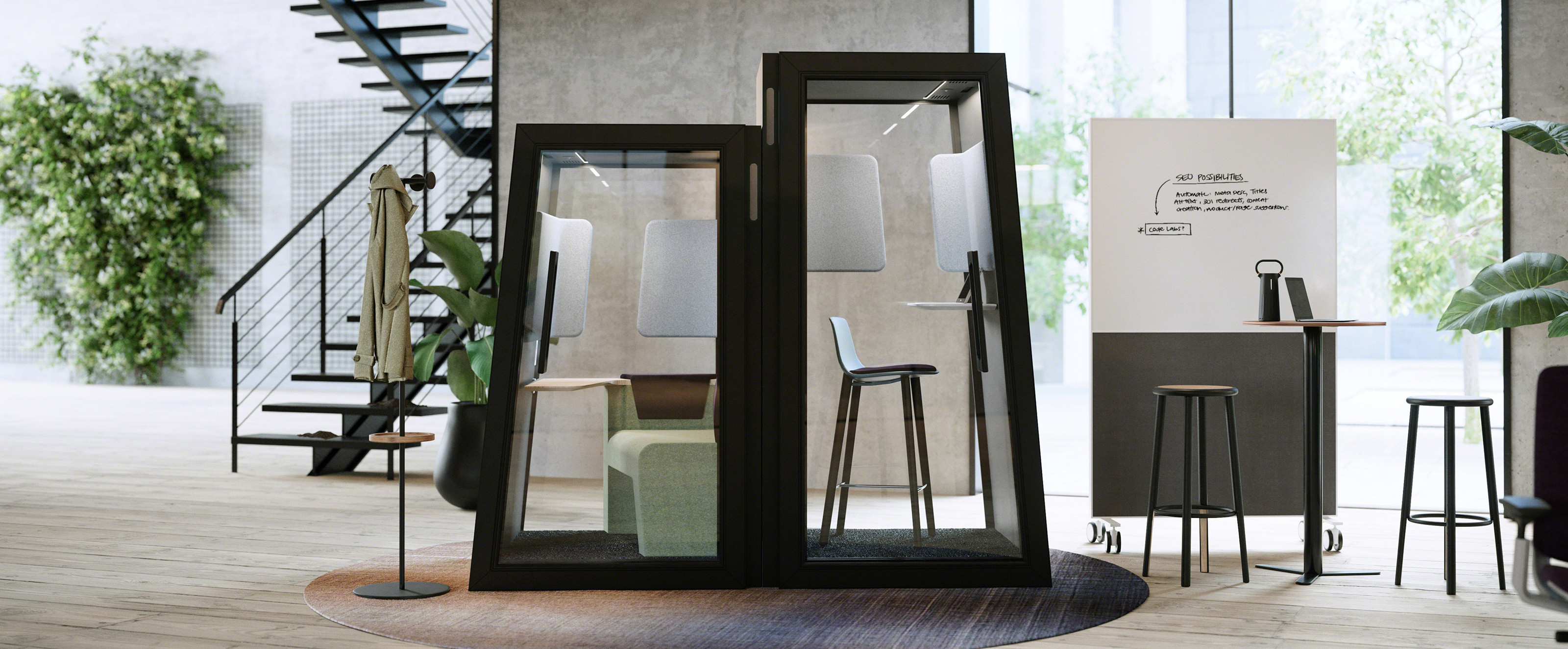 Endroit pratique où se retirer dans un espace ouvert, Flex Kiosk est un refuge pour être à l’abri des regards.