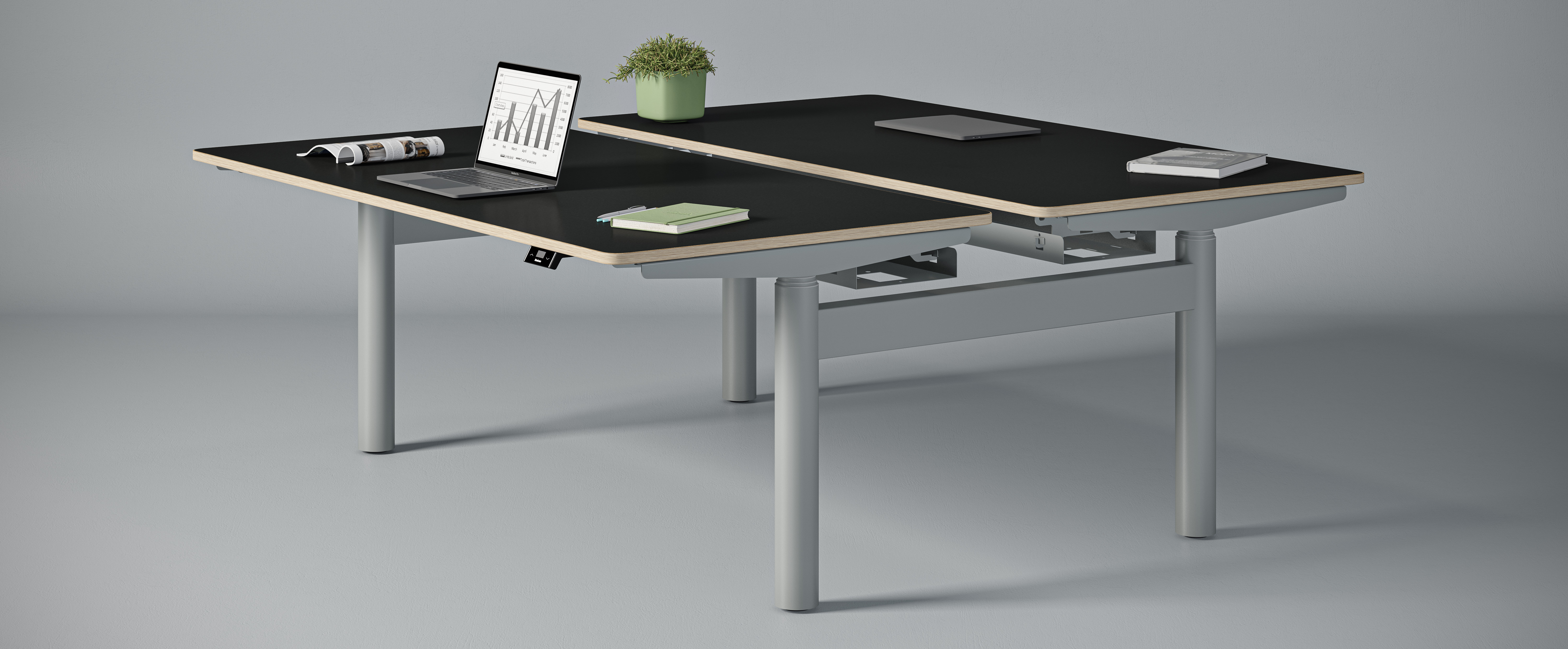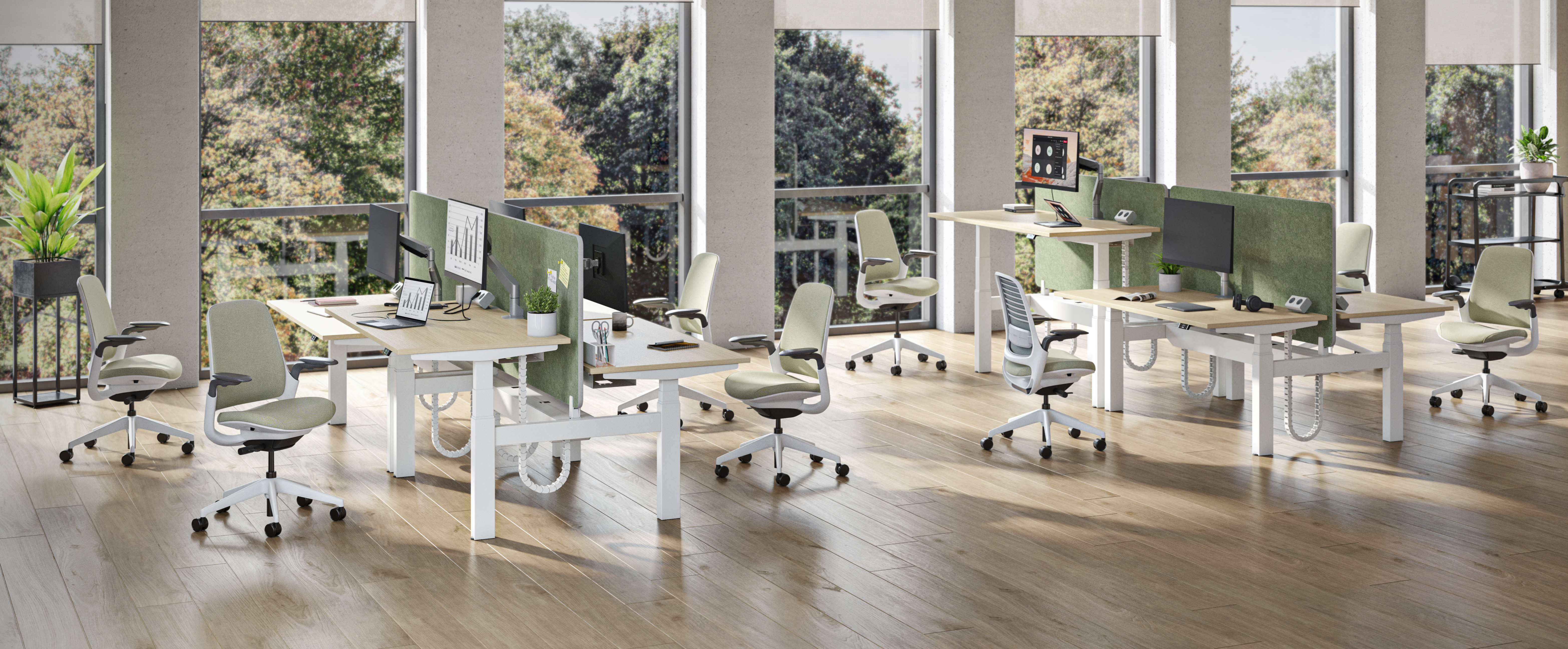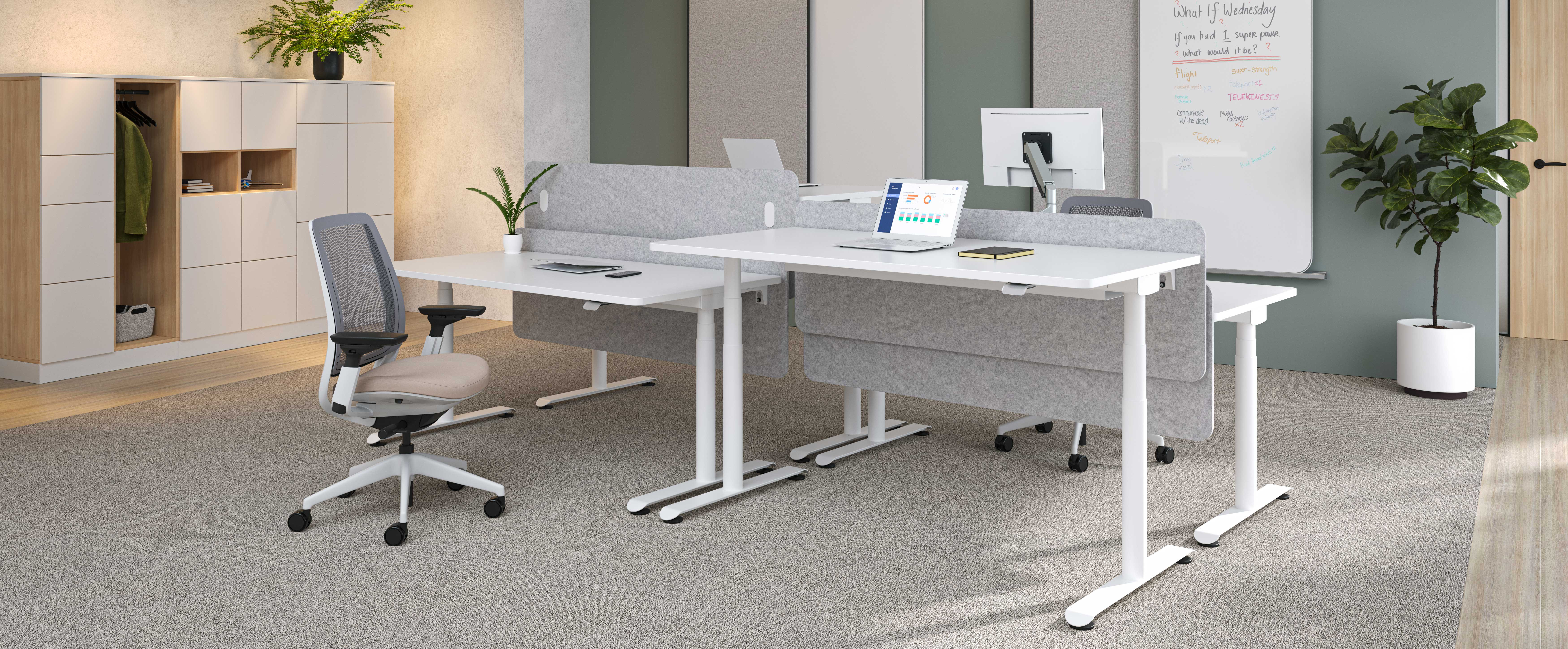 Les bureaux et benchs réglables en hauteur de la collection Possilio sont conçus pour s’adapter à chaque environnement, chaque configuration et chaque style, et ce, quel que soit le budget. La gamme Possilio soutient les modes de travail contemporains grâce à son design ergonomique et à ses performances intuitives. Les écrans de confidentialité et les panneaux modestie réduisent les distractions et permettent de se concentrer confortablement sur son travail.