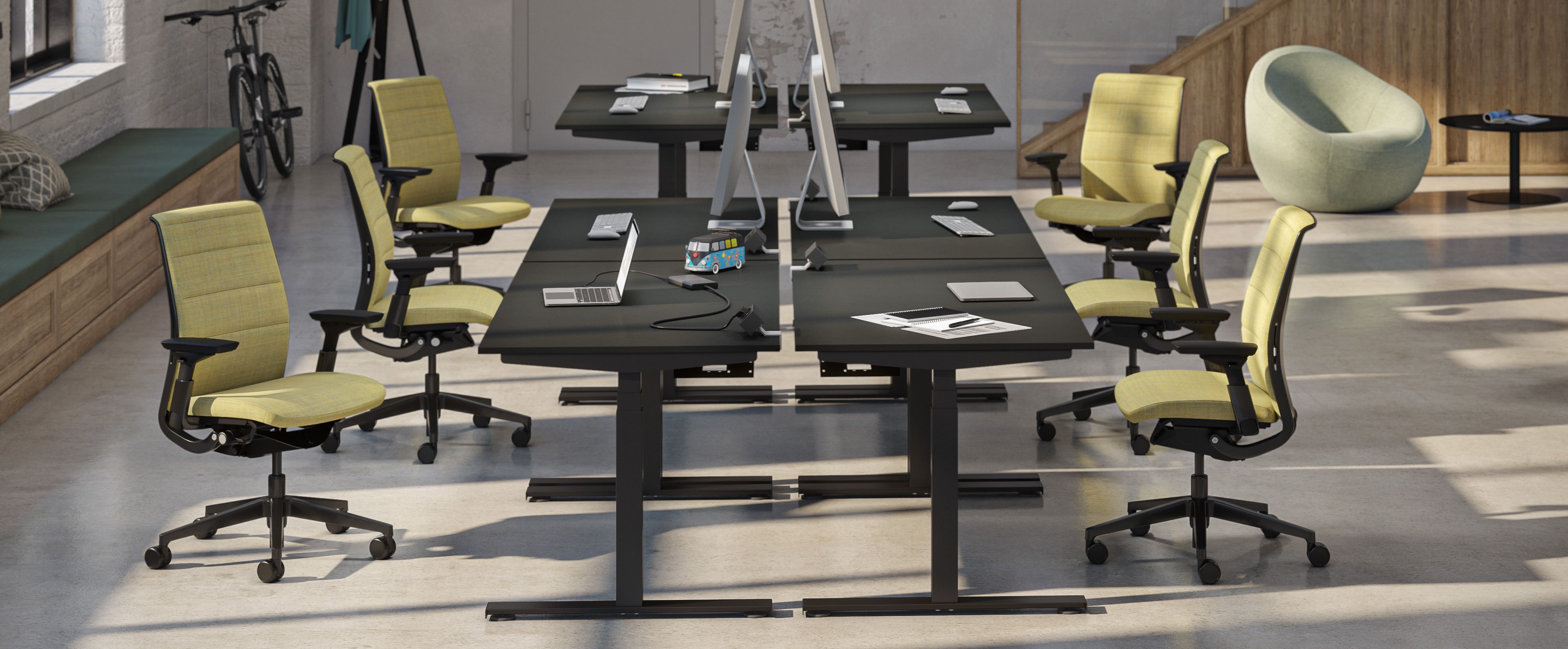 Conçus avec une véritable intelligence fonctionnelle, les bureaux et benchs Possilio® de Steelcase offrent une solution qui concilie besoins, style et budget. Grâce à leur réglage en hauteur, ils encouragent le mouvement entre position assise et debout, permettant aux employés — qui passent en moyenne 63% de leur temps de travail seuls — d’ajuster leur posture pour rester concentrés et productifs. Leur conception modulaire, leurs commandes intuitives et leurs différentes options de séparation d’espace s’adaptent à toutes les morphologies et à divers niveaux de mobilité.